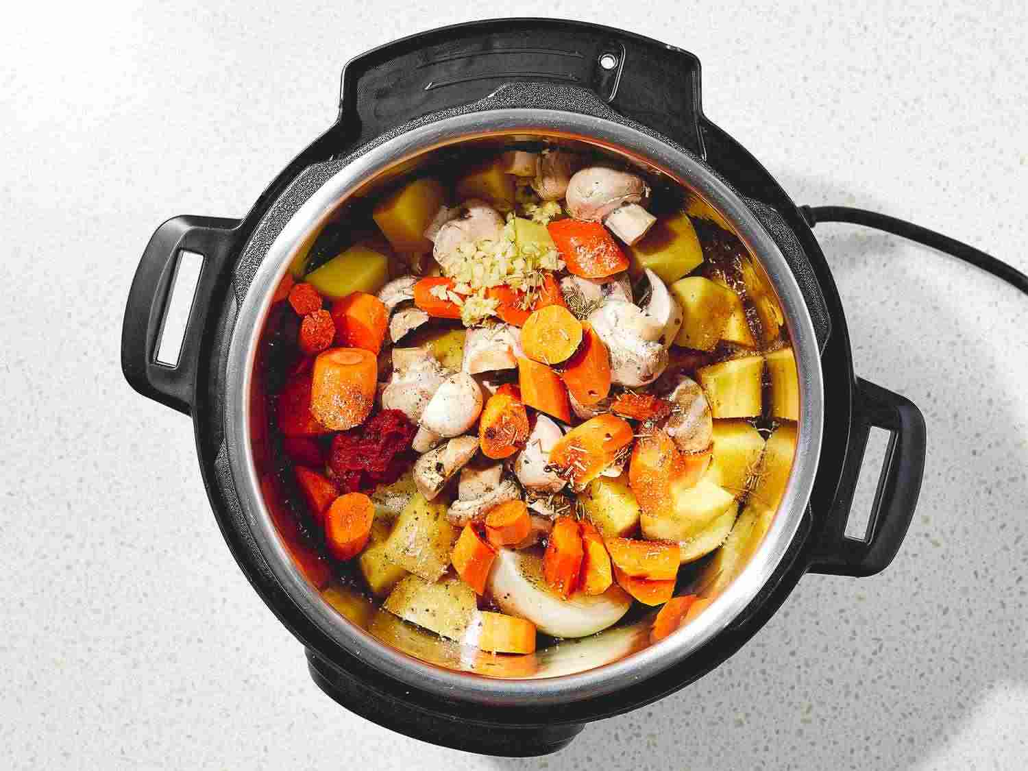 - Step 4:Close and lock the lid. Select Meat/Stew function, according to the manufacturer's instructions; set the timer for 35 minutes. Allow 10 to 15 minutes for pressure to build.